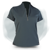 Camisa cuello curvo con cierre metálico frontal, horma holgada, tecnologías Antífluido y protección solar.