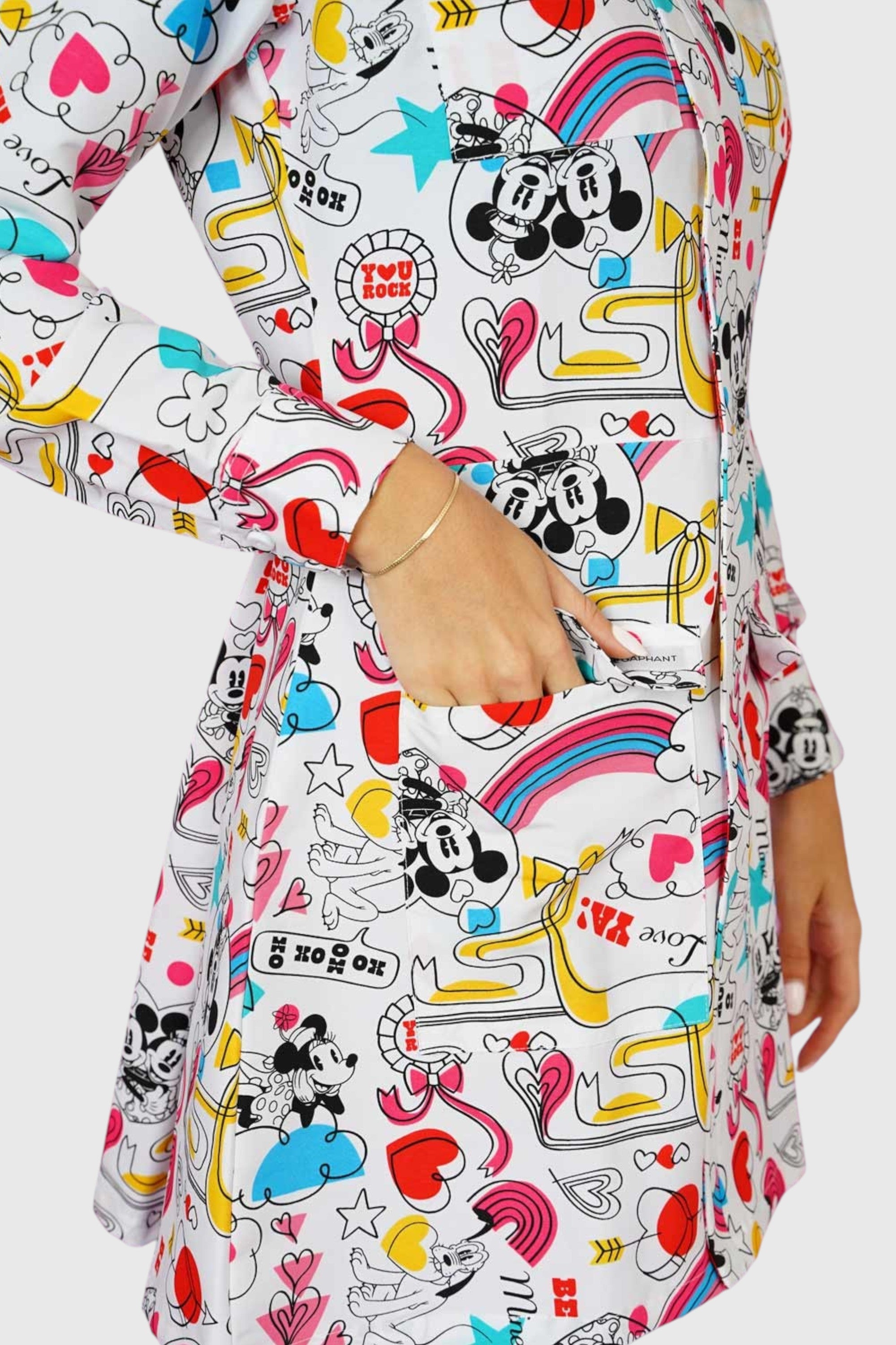 | Bata con bolsillos a la altura de la cintura en lado derecho e izquierdo, con cuatro bolsillos laterales. |