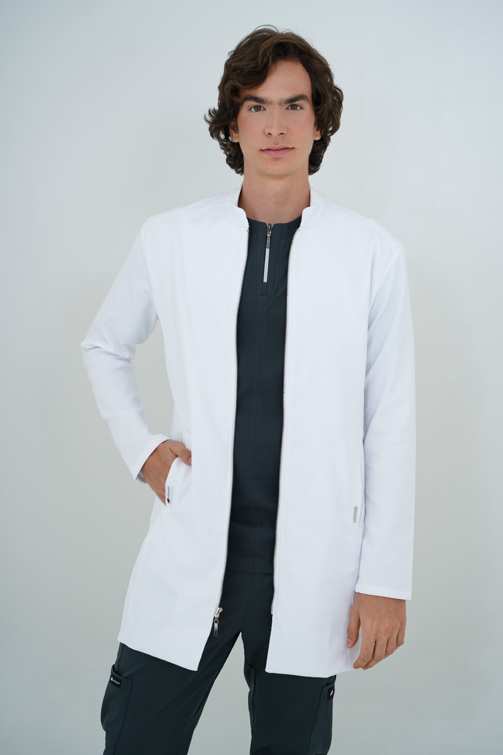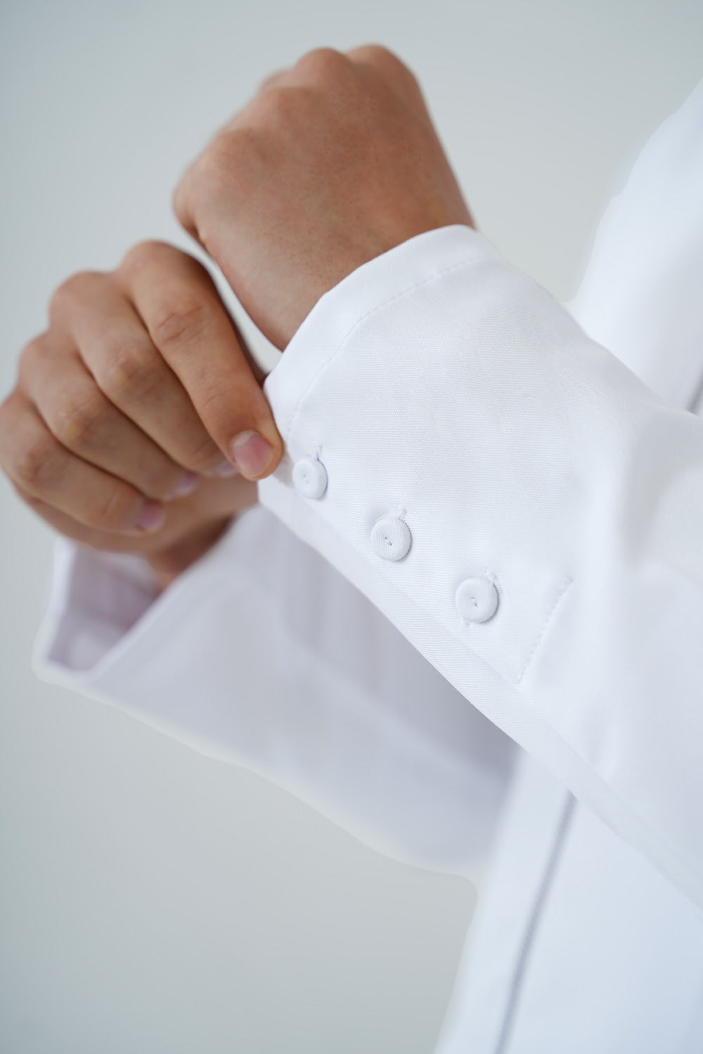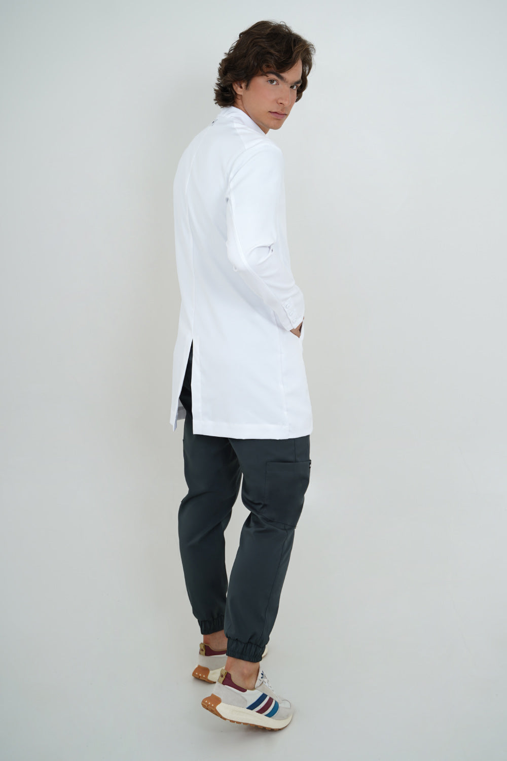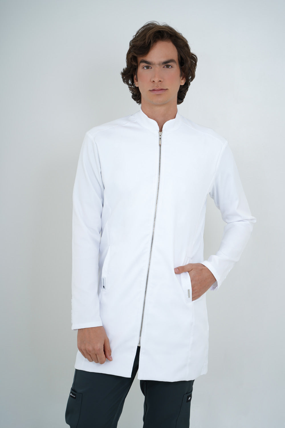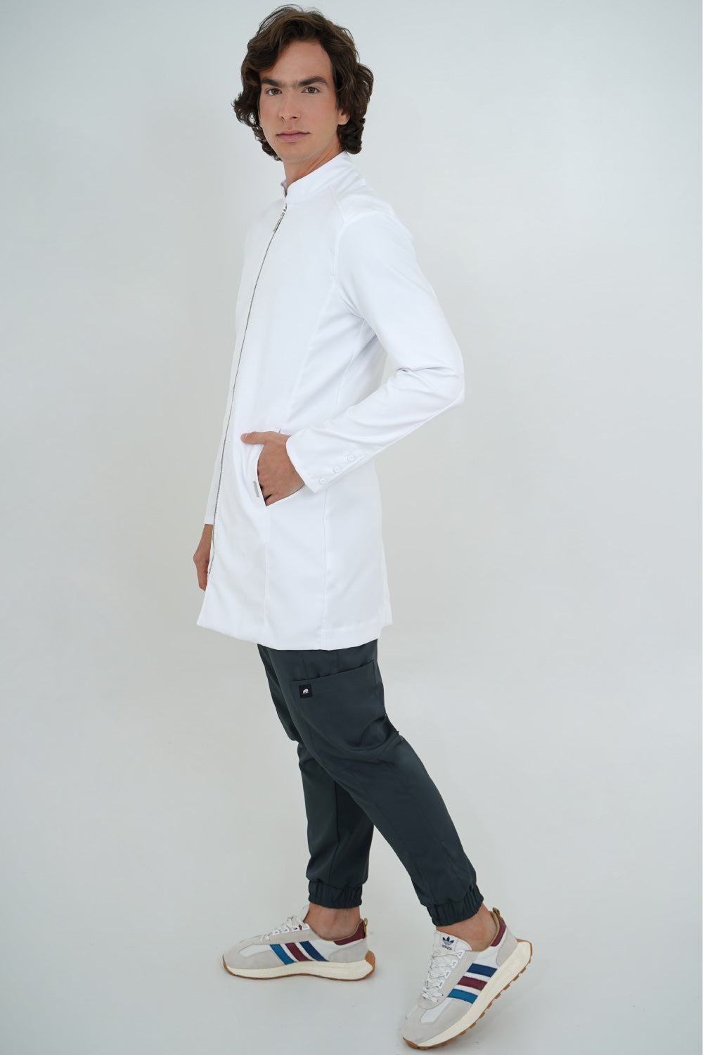 | Bata con bolsillos a la altura de la cintura en lado derecho e izquierdo, con puños derecho e izquierdo resortados. |
