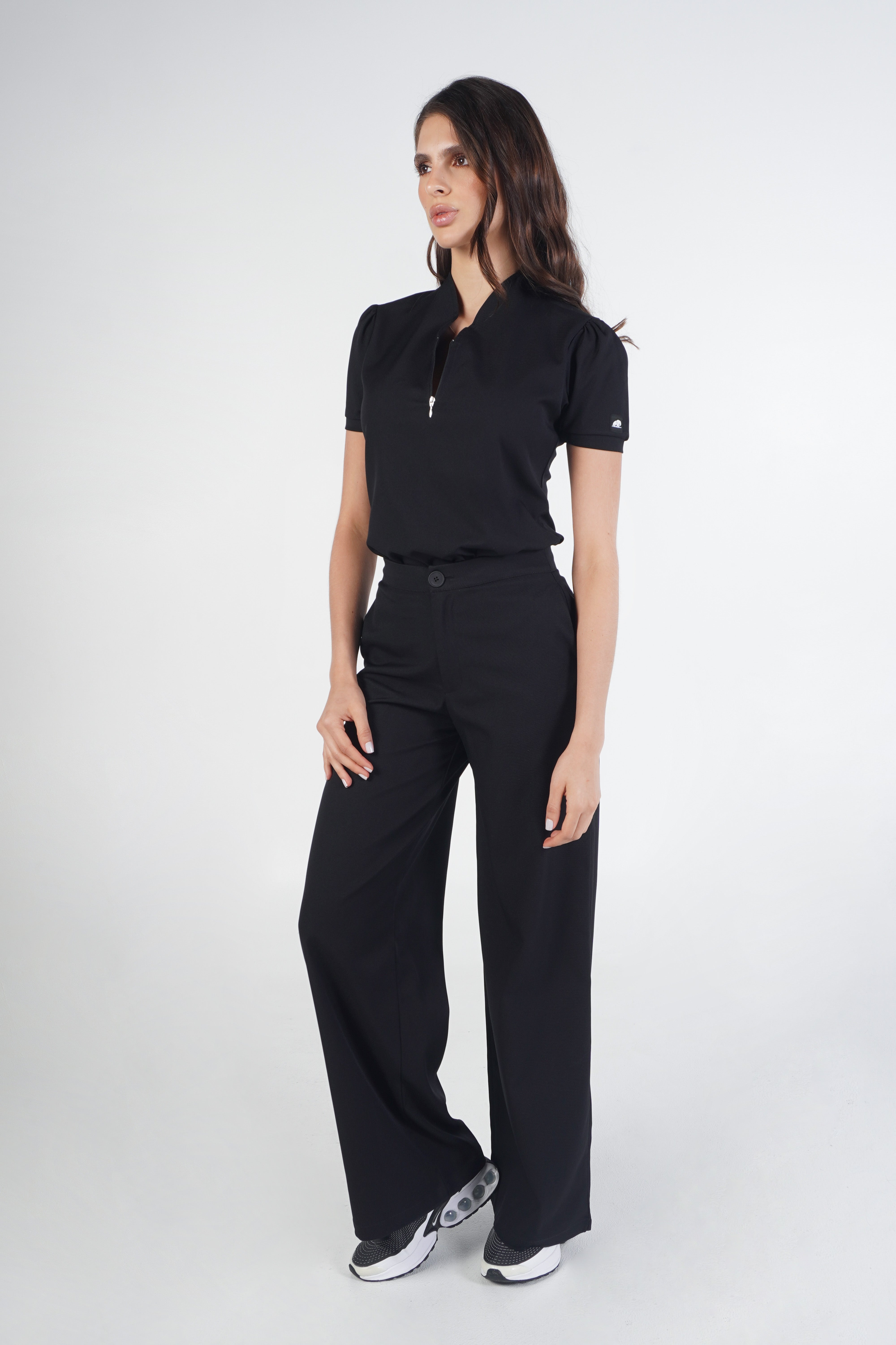 | Pantalón bota recta, ajuste con botón, con bolsillos en la parte de atrás, horma holgada. |